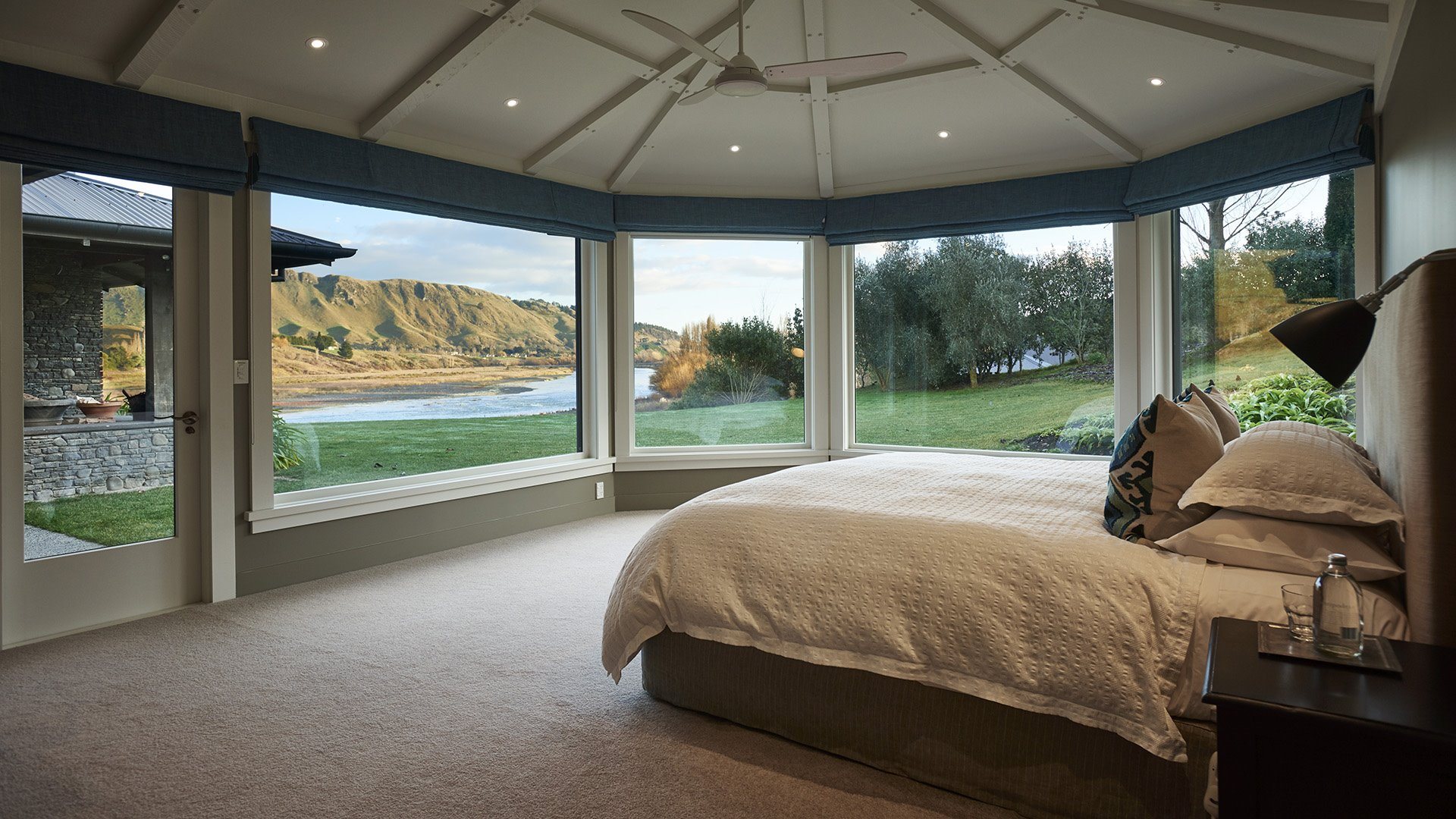 Riverside is a spectacular location perched right above the water on the eastern side of the Tuki Tuki River. Riverside Lodge 4 almost feels like it hangs over the river with spectacular views upstream, downstream and straight ahead to the awesome Eastern facing slopes of Te Mata Peak. While in its own private space, Riverside is just ten minutes drive from Havelock North - with wineries, restaurants, golf courses and beaches not far in all directions.