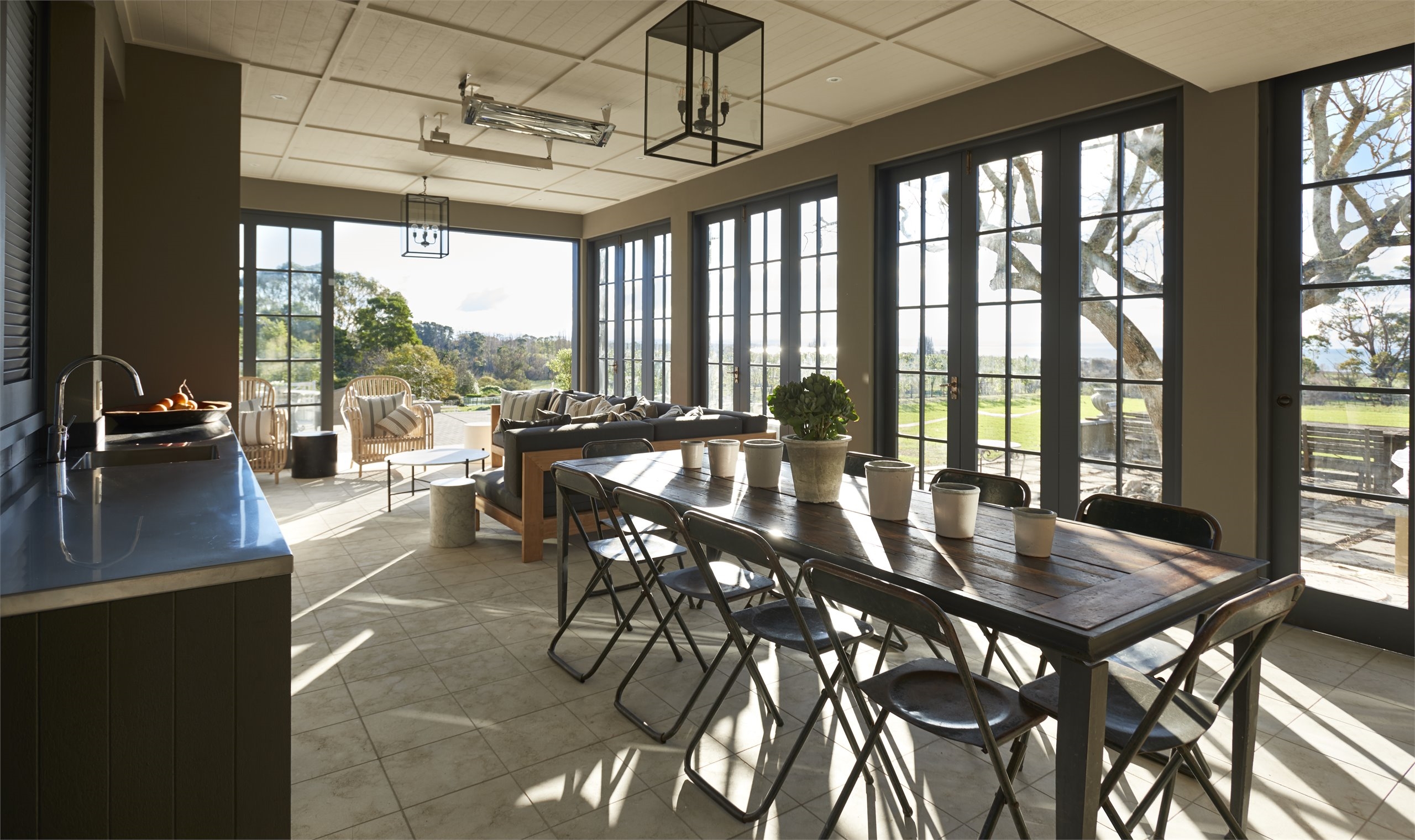The original homestead of Cape Kidnappers Station; has recently undergone a major renovation, splendidly modified to a very high level and providing many functional spaces to enjoy. The expansive landscape encompasses a tennis court; large pétanque court, separate pool and pool house area, spa, croquet and a highly appointed outdoor room.