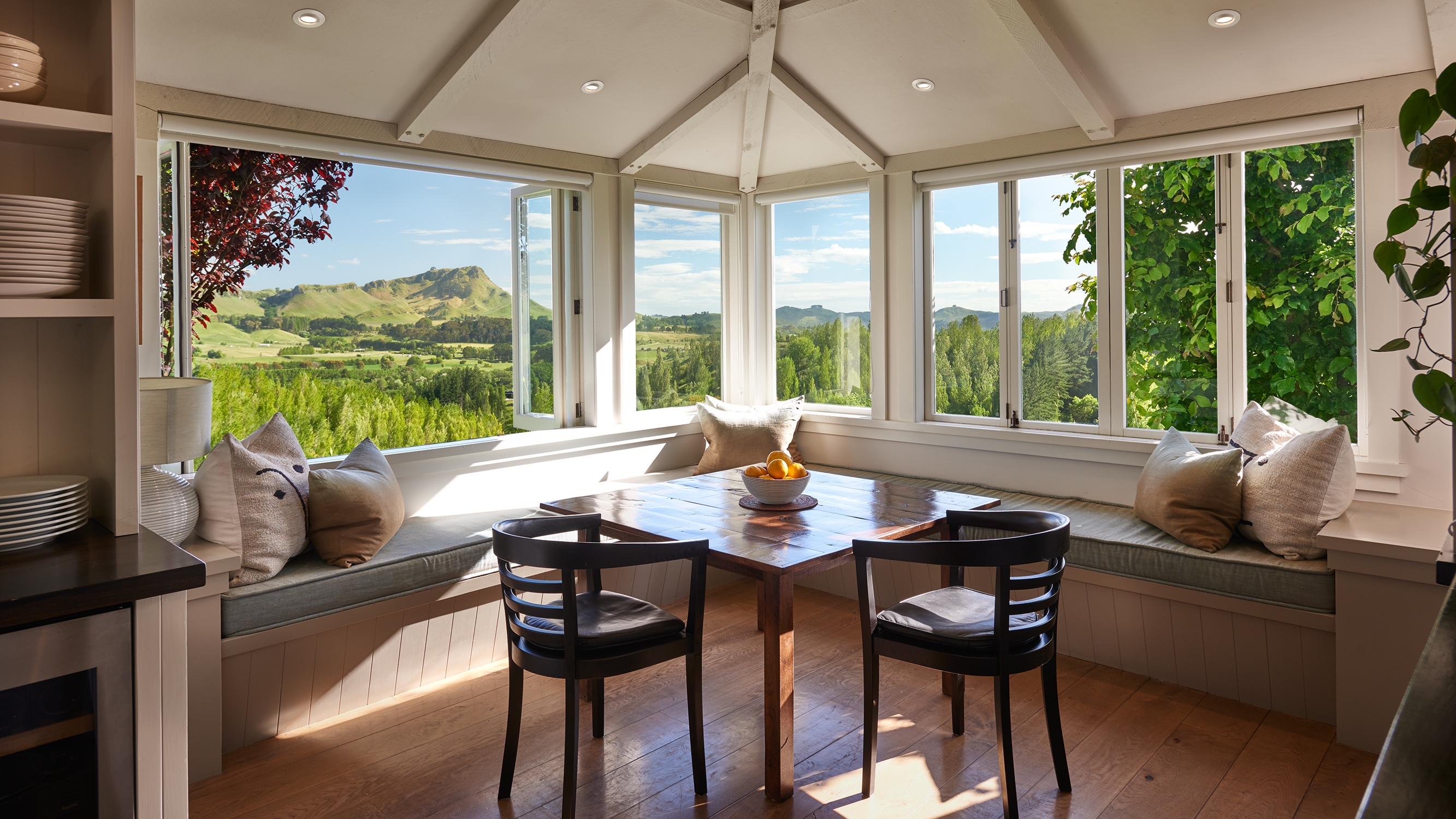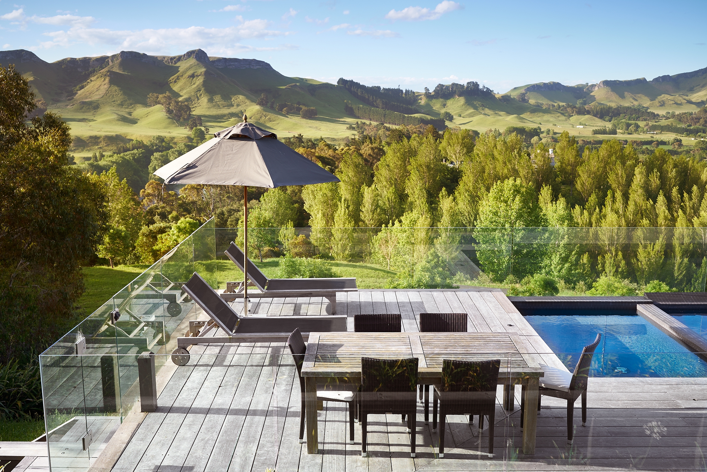With a beautiful sun-drenched north facing window seat, it is the perfect spot to read a book on a winters day. The outdoor pool & spa lounge seating area has one of our most impressive views across the valley and out to Te Mata Peak. It is a short walk down to the communal tennis court at Poplars Upstream.