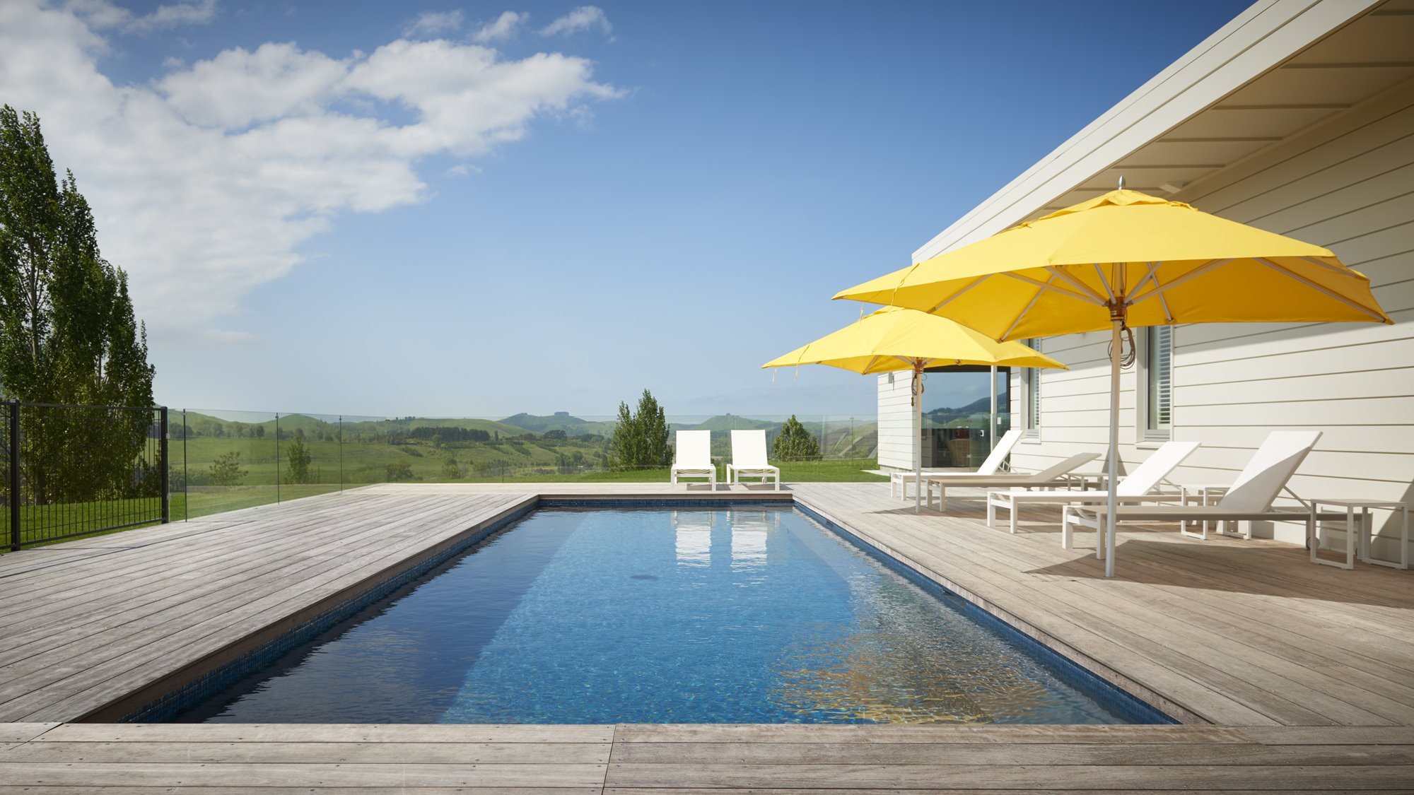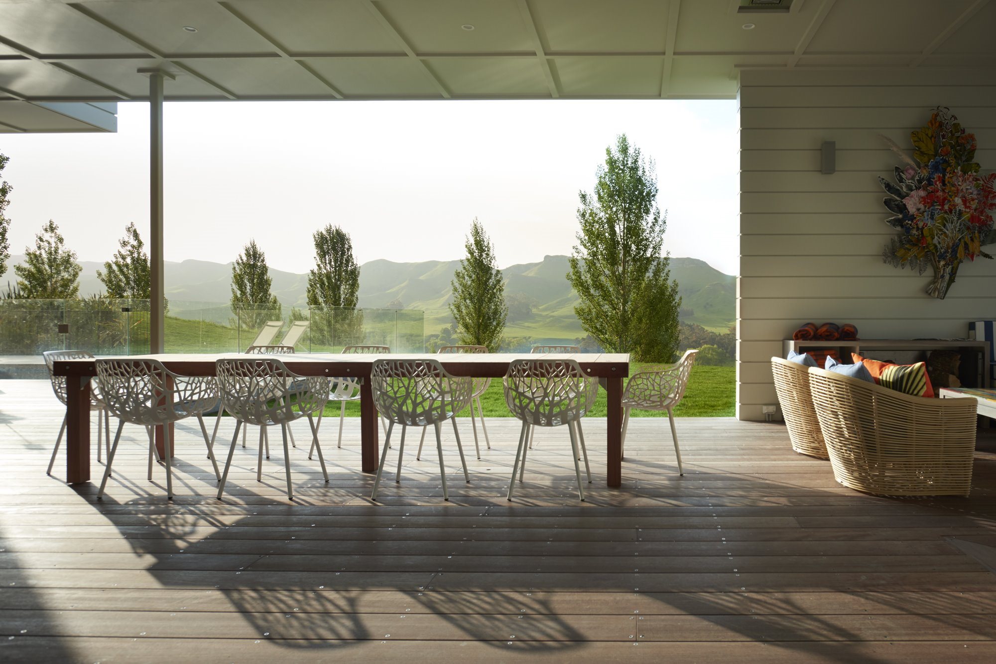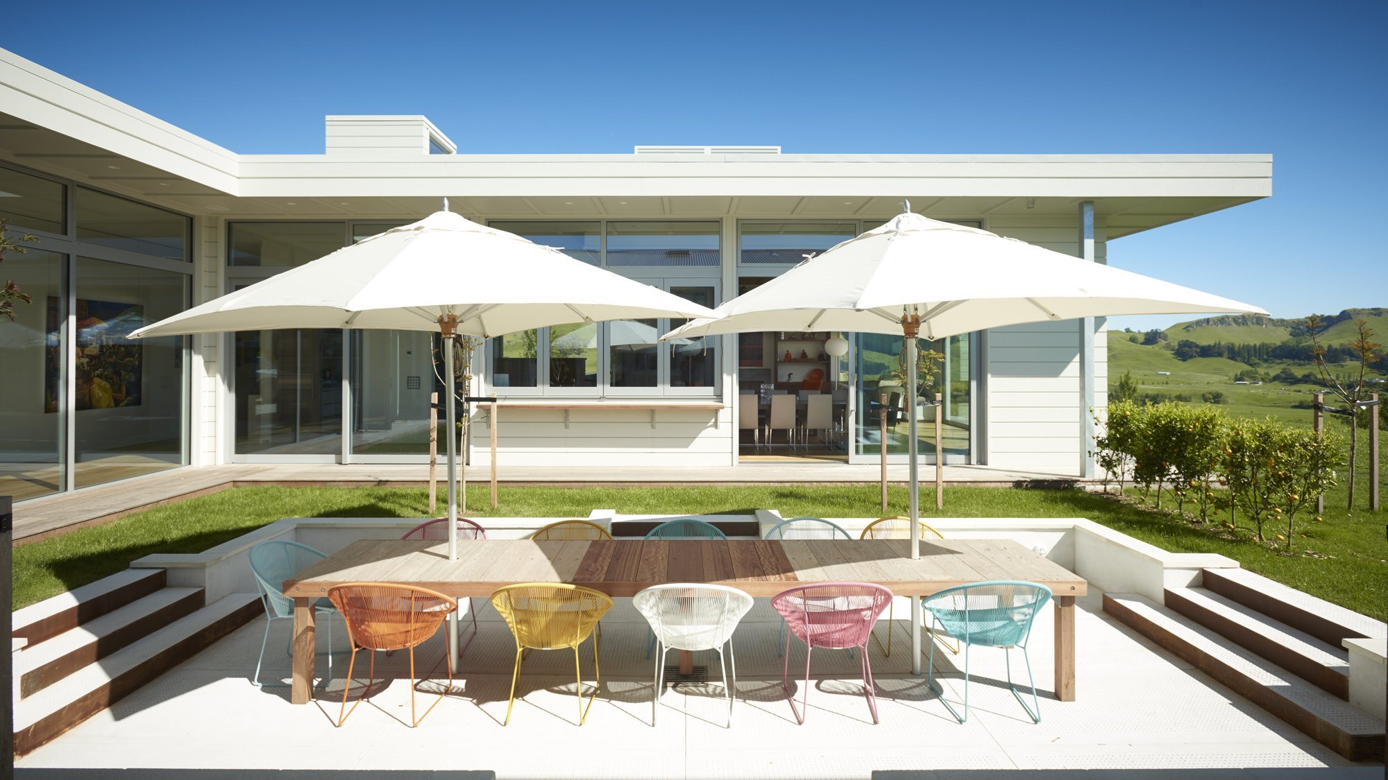 Poplars 7 is a four bedroom ensuited property with a Rockstar feel. With a grand exterior entrance made of silver battened cedar walls, enter into a spacious gallery full of bold and bright art pieces. With impressive glass walls capturing the stunning surroundings, it boasts one of the best views in the valley from the Tuki Tuki River across to Te Mata Peak. With beautiful, colourful outdoor living areas, a large open outdoor fire and a generous pool, it’s New Zealand outdoor living at its best.